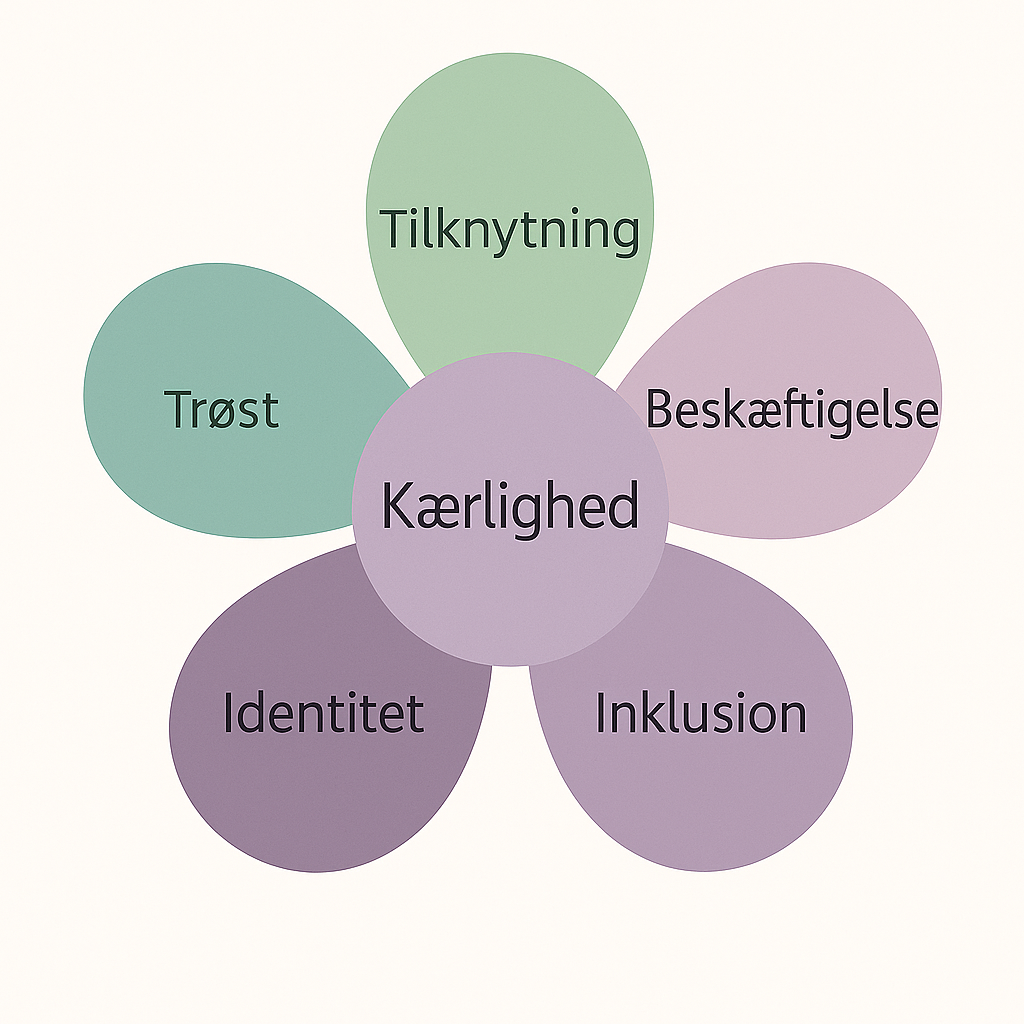 Blomsten viser de psykologiske behov hos mennesker med demens: